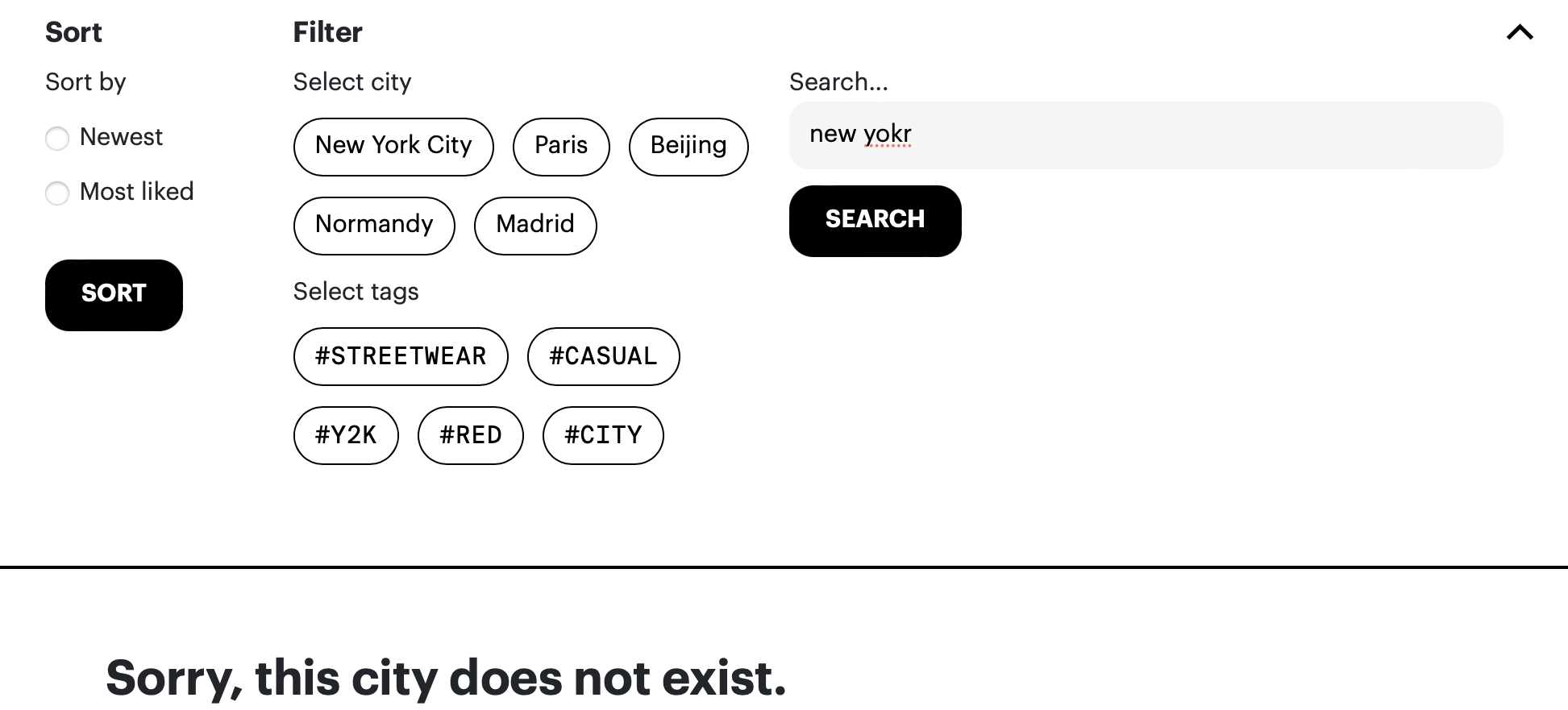 The NewWithTags application has a few main pages: the home page, login/sign up page, create page, and individual post pages. When first opening NewWithTags, users are shown the home page where all posts are displayed. Posts can be sorted by most liked or most recent, or filtered by city or trend. Currently, posts can be filtered by either city or trend, but not both–a feature our team discussed we would implement if the social media application was launched. Posts are given their own page once clicked on where users can see a caption, comments, likes, and interact with the post if they are logged in.